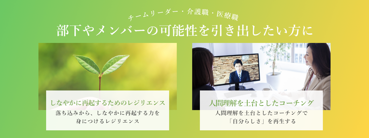 そして、介護職は年齢も経歴もバラバラの環境でチームワークを発揮しなければなりません。各々のスタッフがセルフリーダーシップを発揮していくことで、自ずとチームワークが形成されていきます。