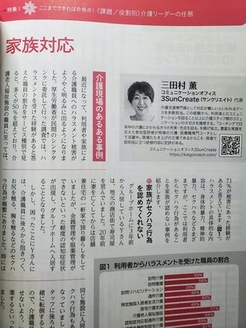 ハラスメントを受けた経験があると答えたのは、50%超のサービスが多く、特養に至っては、71%が被害にあった経験があることがわかります。ハラスメントの具体的な内容は、身体的暴力、精神的暴力、セクハラなど様々ですが、本誌ではご利用者からのセクハラ行為をご家族が認めてくださらない事例をご紹介しています。